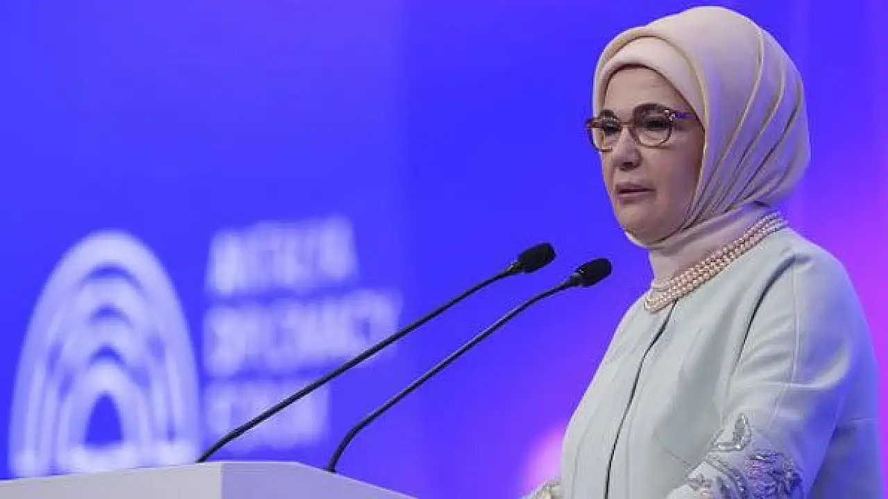 Emine Erdoğan, savaşın karanlık gölgesinin insanlığın üzerine bir kez daha çöktüğünü belirterek, 'Barışa yönelik gayretimizi artırarak el ele vermek zorundayız' dedi.