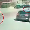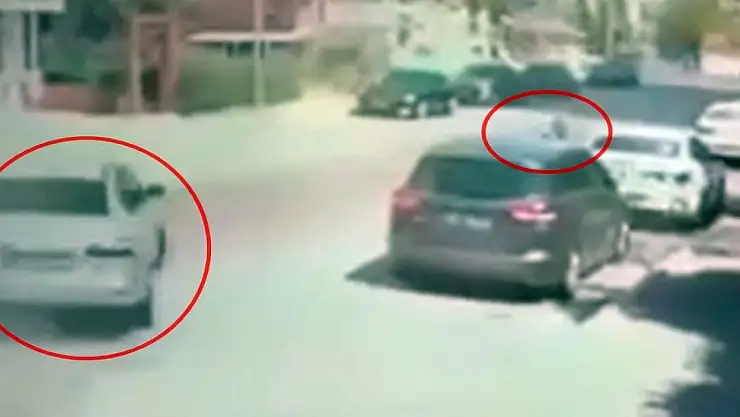 Savrulan otomobilden çocuğu da çekerek saniyelerle kurtuldu