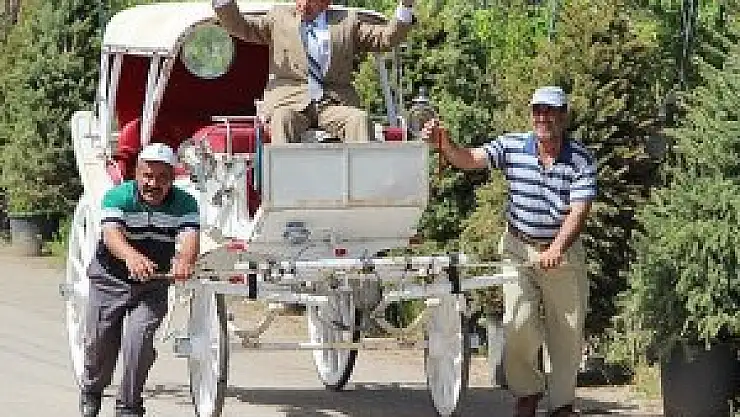 İki kişinin çektiği faytonla gezerek oy istedi