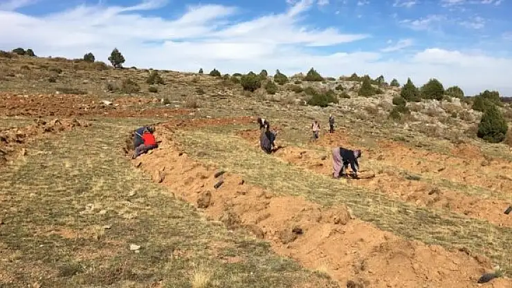 Konya'da ağaç fidesi ekimleri devam ediyor.
