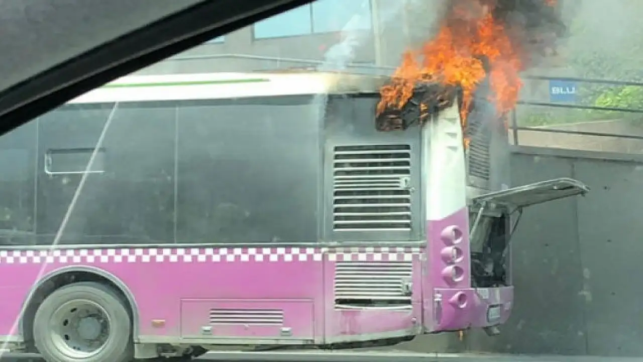 Sefaköy E-5 üzerinde belediye otobüsü alev aldı!