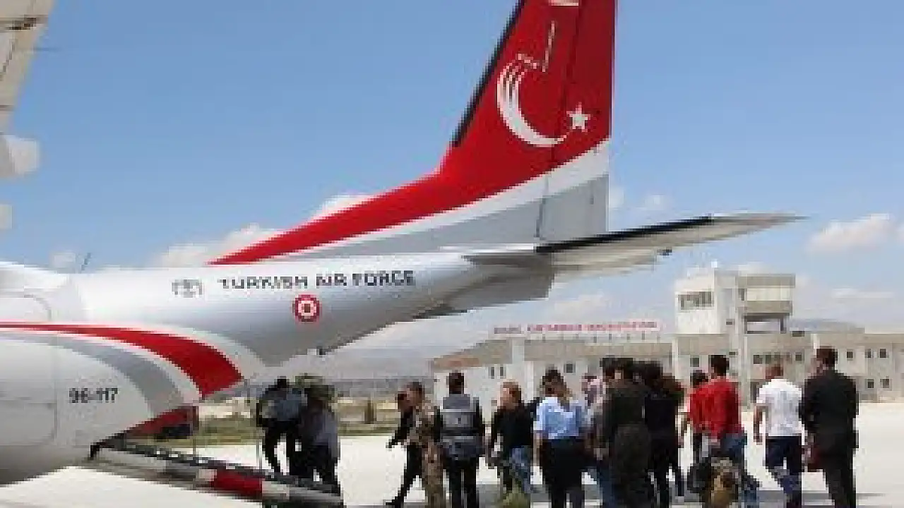 Cesur'un 1,5 yaşındaki oğlu Demiralp'i de alarak uçağa binmesinin ardından şehidin naaşı, defnedileceği Muğla'ya uğurlandı.