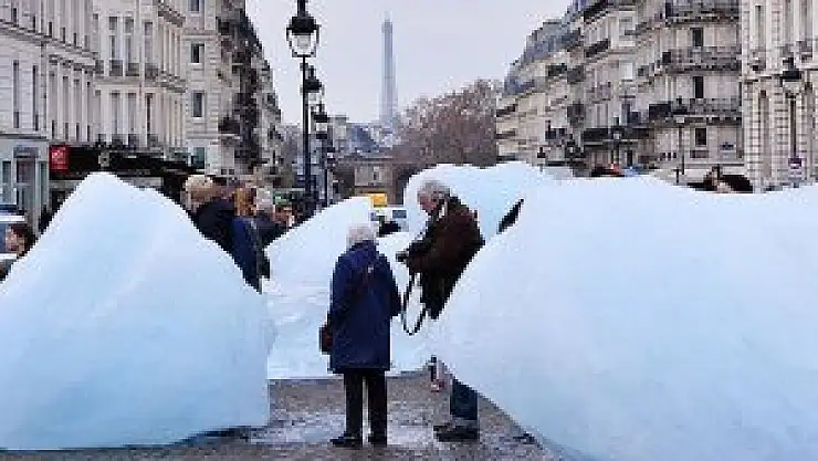 Fransa'da iklim değişikliğine dikkat çekmek için Grönland'dan başkent Paris'e buz kütleleri getirildi.