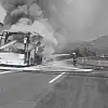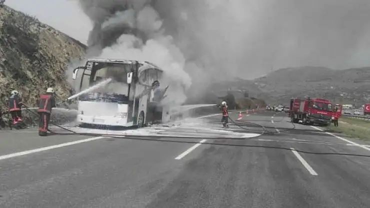 Şehirlerarası yolcu otobüsünde çıkan yangın paniğe sebep oldu