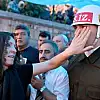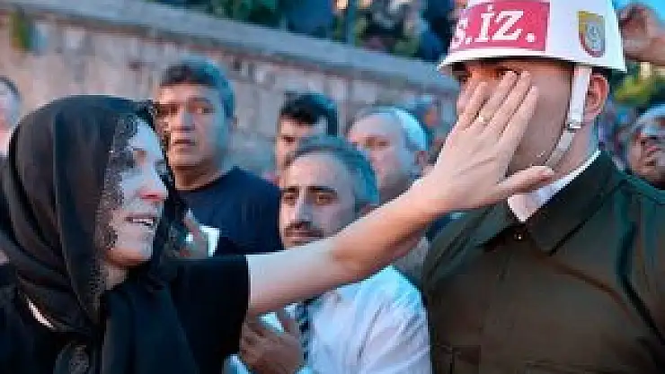 Bu sırada tabutun başında nöbet tutan askerin gözyaşlarına hakim olamadığını gören şehidin ablası Deniz Hülya, elleriyle askerin yüzünü sildi.