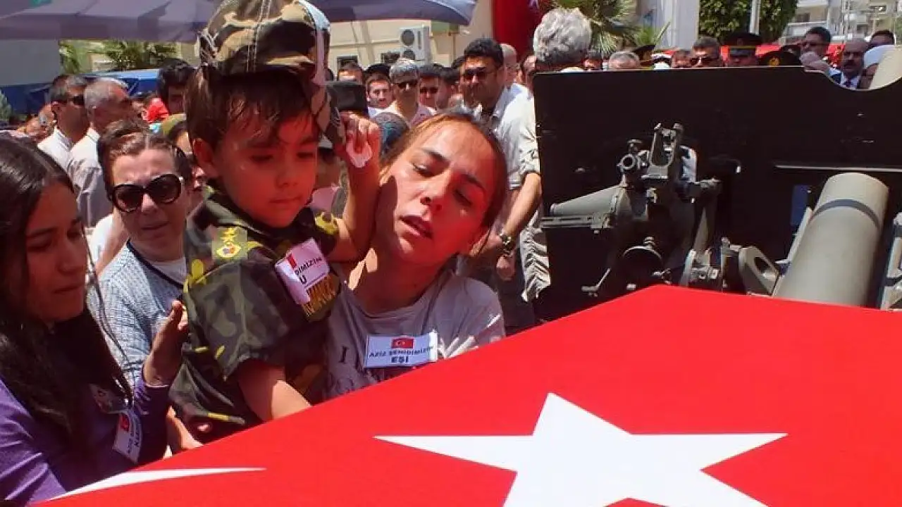 Batman'daki terör saldırısında yaralanmasının ardından tedavi gördüğü hastanede şehit olan Uzman Çavuş Gülnar'ın cenazesi, memleketi Mersin'de toprağa verildi. Askeri üniforma giydirilen şehidin 4 yaşındaki oğlu, görenleri duygulandırdı.