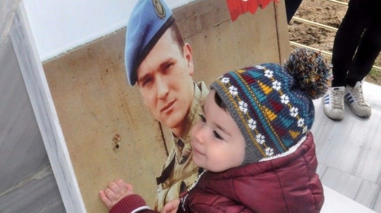 Lice'de şehit olan Selim Vural'ın oğlu Berat Vural, babasının fotoğrafını öpüp mezarının başında ayrılmak istememesi herkesi duygulandırdı.