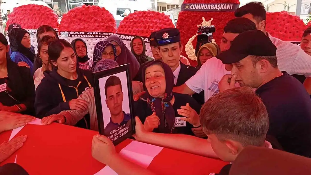 Şehit annesi Meral Ev'in, oğlunun tabutuna sarılarak defalarca fotoğrafını öpmesi ise yürekleri dağladı.
