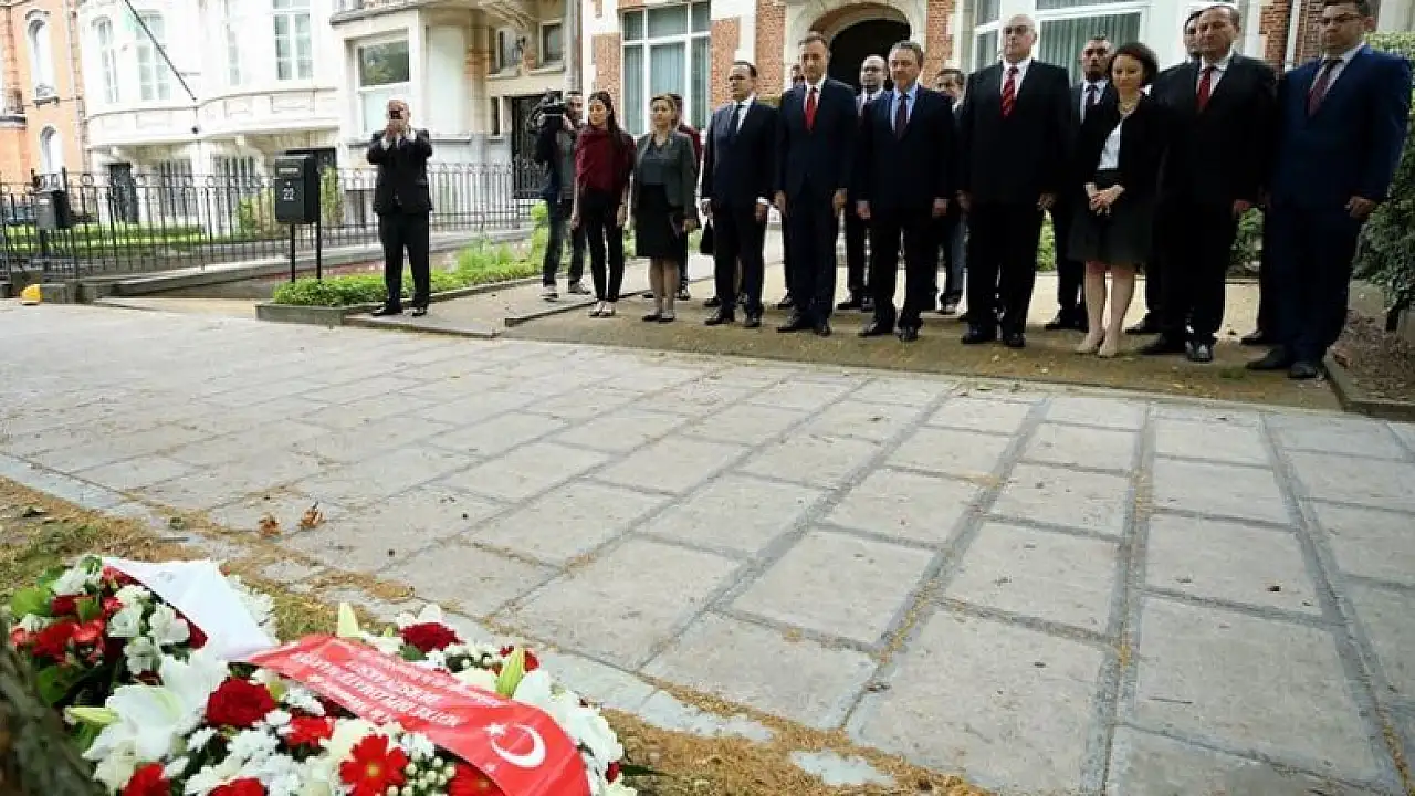 Belçika'nın başkenti Brüksel'de 1983'te İdari Ateşe olarak görev yaptığı dönemde Ermeni terör örgütü ASALA tarafından şehit edilen Dursun Aksoy törenle anıldı.