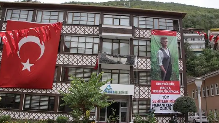 Maçka Belediye binasına ise Eren’in fotoğrafının yer aldığı afiş asılırken, afişin üzerinde, "Eren Bülbül Maçka seni unutmayacak. Tüm şehitlerimizin mekanı cennet olsun." yazıldığı görüldü.