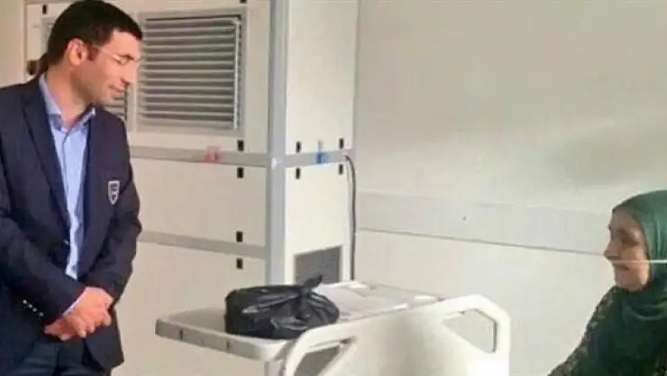 Görev süresi boyunca halkın gönlünü kazanan Şehit Safitürk'ün, hastanede yaşlı bir kadın karşısındaki duruşuna ait fotoğraf dikkati çekiyor.