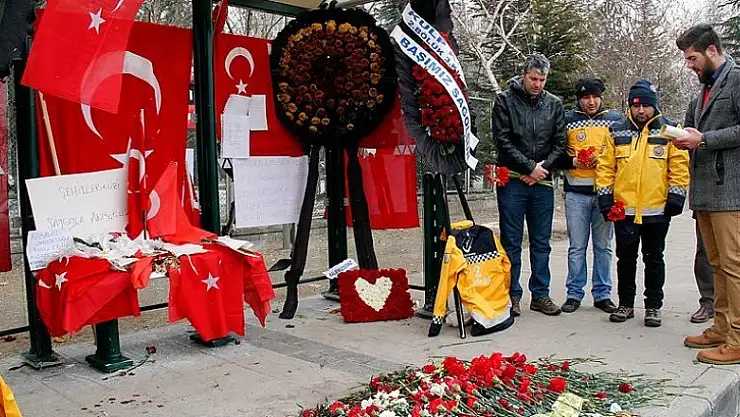 Kayseri'de çarşı iznine çıkan askerleri hedef alan terör saldırısının yaşandığı otobüs durağına vatandaşların ziyareti sürüyor.