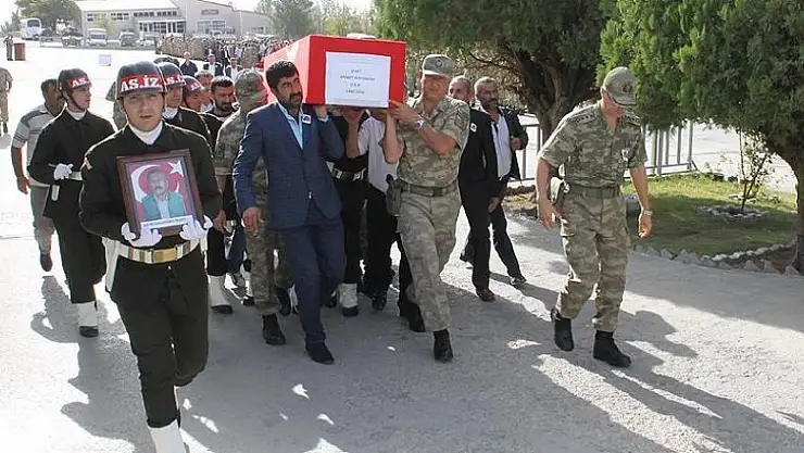 23. Jandarma Sınır Tümen Komutanlığı'ndaki törende, şehit Adıyaman'ın (48) Türk bayrağına sarılı naaşı katafalka konuldu, öz geçmişi okundu ve dua edildi.
