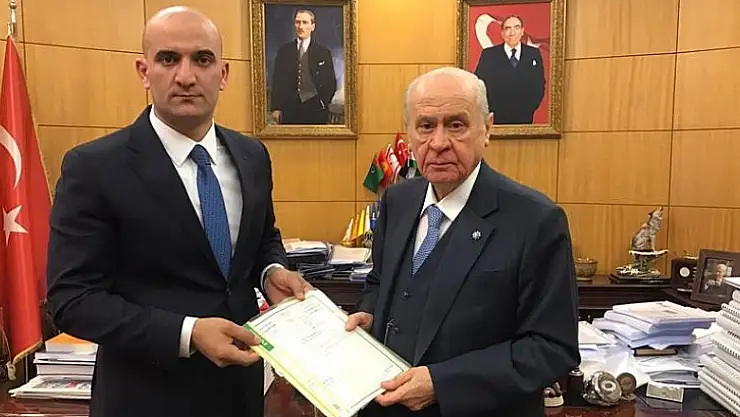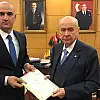 Ülkü Ocakları Genel Başkanı Kılavuz, MHP Genel Başkanı Bahçeli'ye Telafer Şehit Piyade Astsubay Üstçavuş Musa Özalkan Anaokulu'nun yapılacağı arsanın tahsis evraklarını sundu.