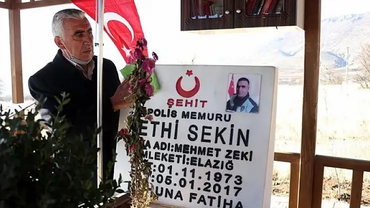 Sekin'in Elazığ'ın Baskil ilçesi Doğancık köyündeki kabrine ziyarette bulunan dayısı Hikmet Kürüm, şehit yeğeni için dua etti, mezarının bakımını yaptı.