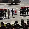 Saygı duruşunda bulunulmasının ardından şehitlerin Türk bayrağına sarılı naaşları alana getirilerek öz geçmişleri okundu.