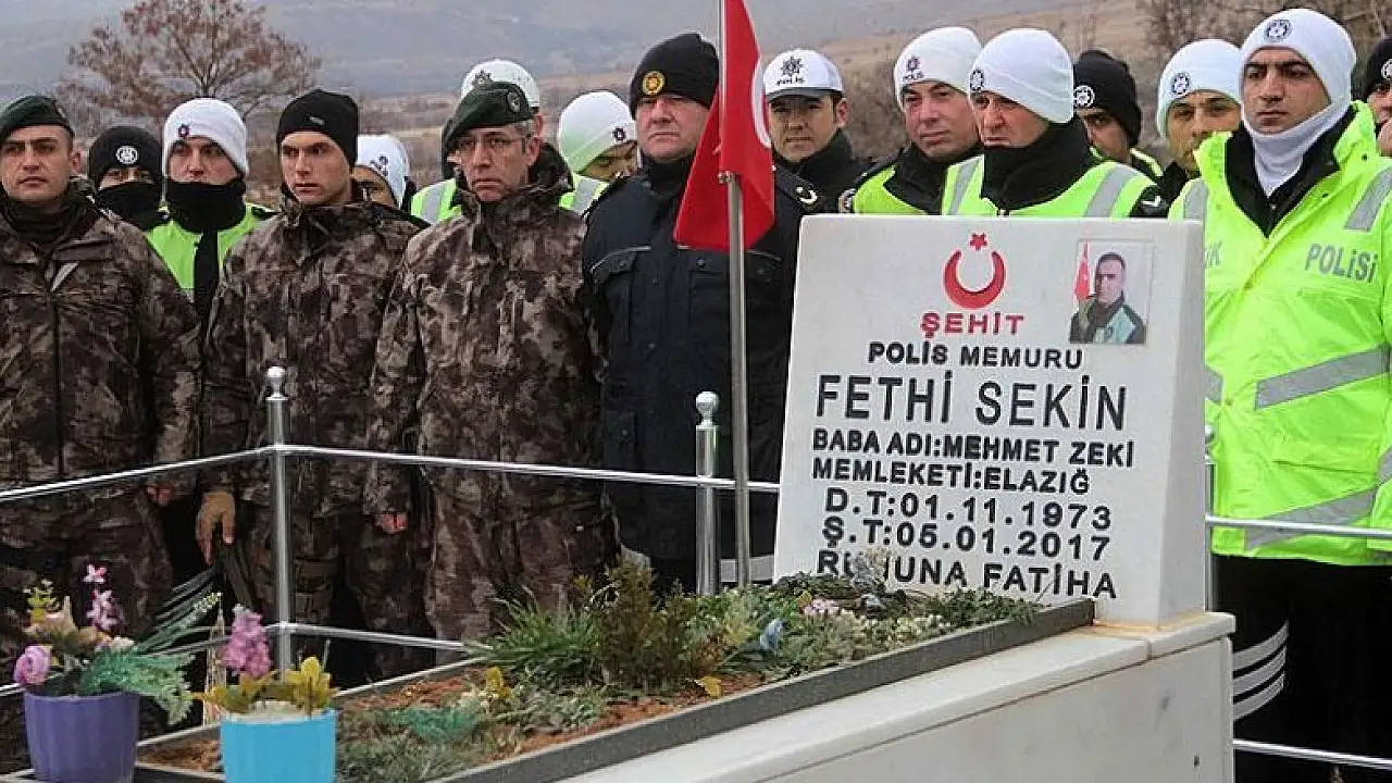 İzmir Adalet Sarayı'na yönelik terör saldırısında şehit olan polis memuru Fethi Sekin için şehadetinin 1. yılı dolayısıyla memleketi Elazığ'ın Baskil ilçesindeki kabri başında anma töreni yapıldı.