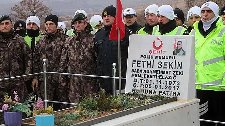 İzmir Adalet Sarayı'na yönelik terör örgütü PKK'nın geçen yıl 5 Ocak'ta gerçekleştirdiği terör saldırısında gösterdiği kahramanlıkla muhtemel faciayı önleyen şehit polis memuru Fethi Sekin şehadetinin birinci yılında Elazığ'ın Baskil ilçesindeki kabri başında anıldı.