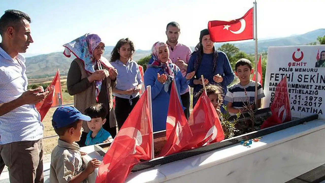 İzmir'deki terör saldırısında şehit olan polis memuru Fethi Sekin'in Elazığ'ın Baskil ilçesindeki kabrinde Ramazan Bayramı dolayısıyla ziyaretçi yoğunluğu yaşanıyor.