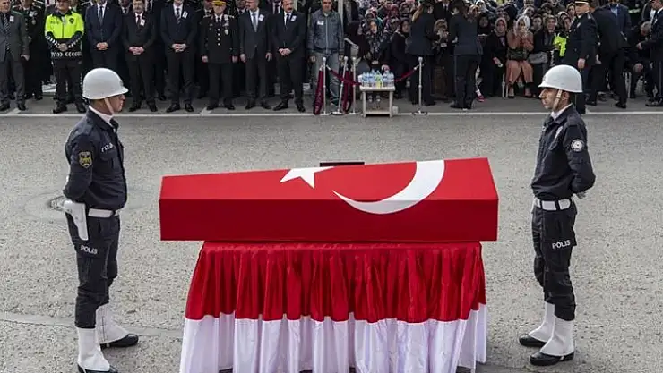 Şehit polisi son yolcuğuna meslektaşları uğurladı
