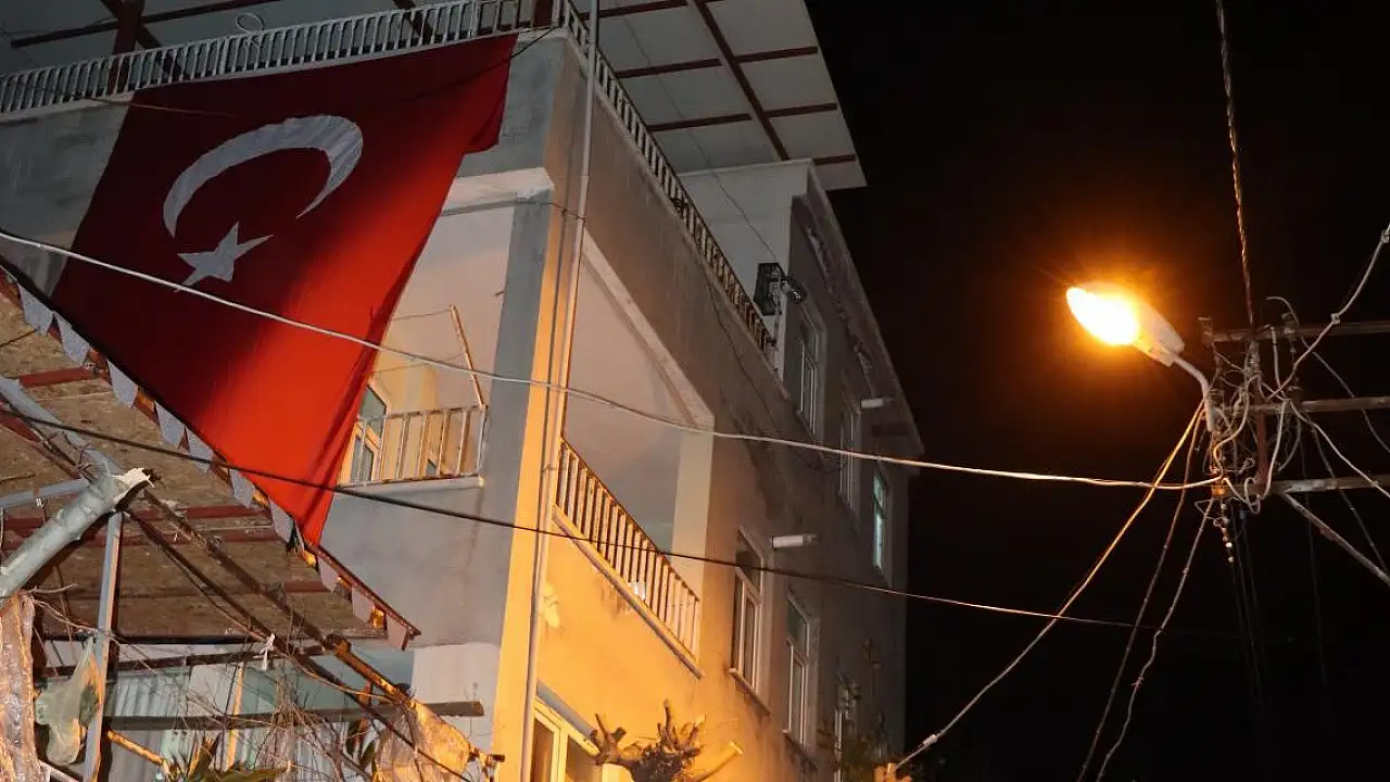 Şehidin babaevine Türk bayrağı asıldı.