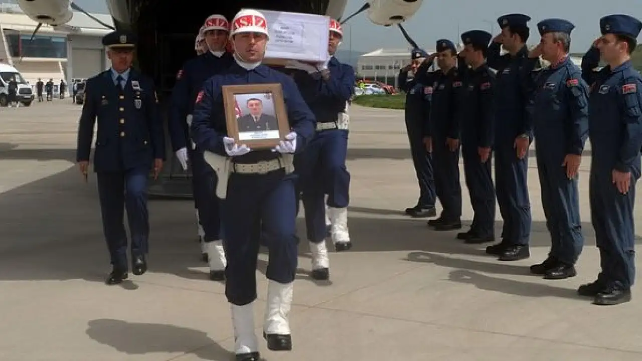 Şehit Çon'un Türk bayrağına sarılı naaşını taşıyan askeri uçak Amasya Merzifon Havalimanı'na indi.