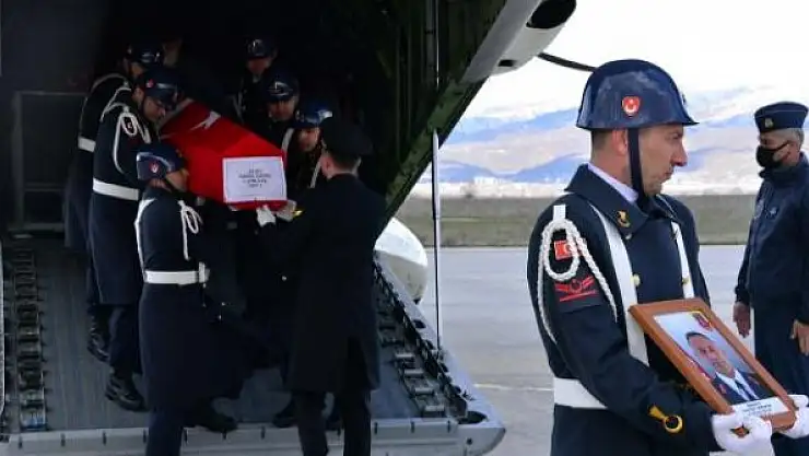Askeri uçakla Bingöl Havalimanı'na getirilen şehidin Türk bayrağına sarılı tabutu, askerler tarafından cenaze aracına alındı.