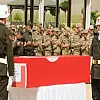 70. Mekanize Piyade Tugay Komutanlığındaki törende, şehidin Türk bayrağına sarılı naaşı katafalka konularak, öz geçmişi okundu ve dua edildi.