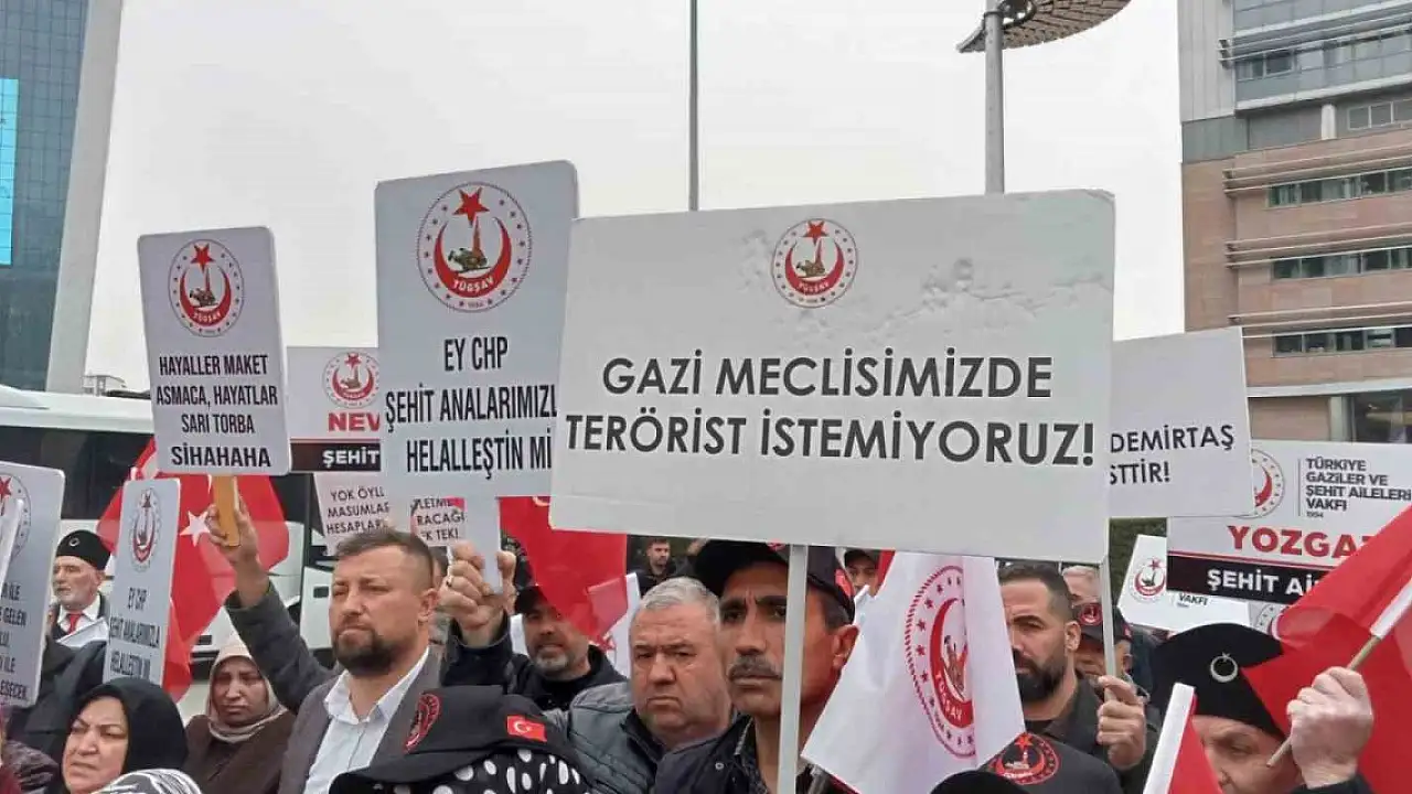 Şehit aileleri ve gaziler, Cumhuriyet Halk Partisi (CHP) Genel Merkezi önünde CHP Genel Başkanı Kemal Kılıçdaroğlu'na tepki gösterdi. Türkiye Gaziler ve Şehit Aileleri Vakfı (TÜGŞAV) Başkanı Lokman Aylar, 'Ey Kılıçdaroğlu, PKK ve PYD terör örgütü müdür, değil midir? Abdullah Öcalan bebek katili, PKK kurucusu ve on binlerce insanımızın cinayetinden sorumlu mudur? Türk milletine ihanetten derhal geri dönmelisiniz' dedi.