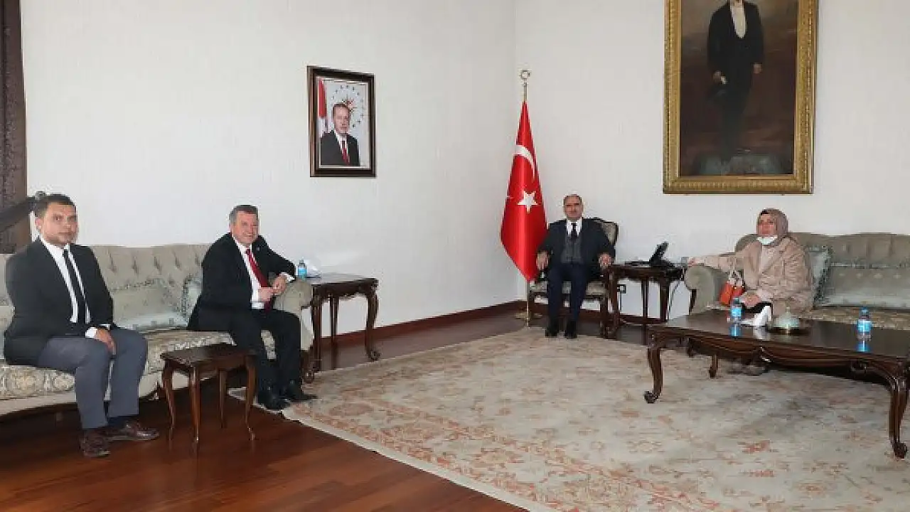 Konya Şehit Aileleri Derneği Başkanı Recep Pekdemir ile şehit yakınları Feyza Özyoldaş ve Faik Öztürk, Vali Vahdettin Özkan'ı makamında ziyaret etti.