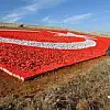 Afyonkarahisar'ın Sandıklı ilçesinde huzurevinde yaşayan Kaplan çakıl taşlarıyla Timurlenk tepesine Dağlıca'da şehit düşen 16 asker anısına dev Türk bayrağı yaptı.