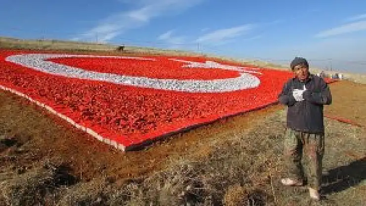 El arabası ve tenekelerle 3 ayda topladığı irili ufaklı çakılları, Timurlenk tepesine getiren Kaplan, 220 metrekare alana serdi. Ardından, sırt pompası ile taşları kırmızı ve beyaza boyayan Kaplan, dev bir Türk bayrağı oluşturdu.
