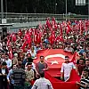 Binlerce kişi ellerindeki Türk bayraklarıyla Kılıçaslan Caddesi'nden Atatürk Caddesi'ne kadar yürüdü. Burada şehitler için bir dakikalık saygı duruşunda bulunan grup, İstiklal Marşı'nı söyledi.