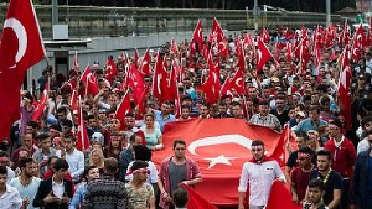 Aksaray’da Kent Meydanı'nda toplanan vatandaşlar, Türk bayraklarıyla "Şehitler ölmez vatan bölünmez" ve "Ne mutlu Türküm diyene" şeklinde slogan attı.