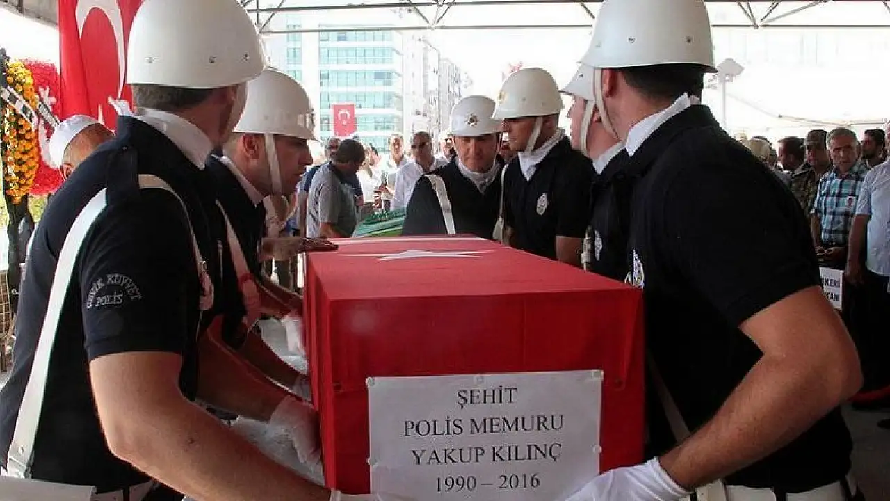 Evli ve 3 yaşında Şeyma Nisa adında bir kızı olan şehit Yakup Kılınç'ın (26) Türk bayrağına sarılı naaşı, meslektaşlarının omuzlarında İzzetpaşa Camisi'ne getirildi. Şehidin babası Mahmut Kılınç ve kardeşi tören boyunca gözyaşlarına hakim olamadı.