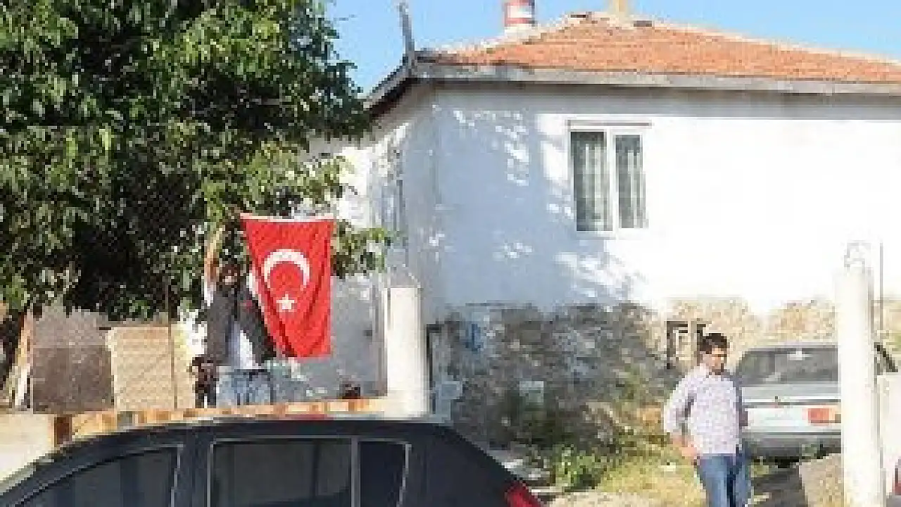 Şehidin baba ocağına ve evinin bulunduğu sokağa bayraklar asıldı.