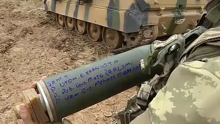Söz konusu mermi, Afrin'in kuzeybatısında belirlenen terörist gruba yönelik atışta kullanıldı. Şehitlerin isimleri yazılı olan havan mermisi, yapılan atışla terörist grubun bulunduğu hedefi vurdu.
