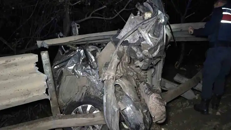Bursa'da şeker pancarı yüklü tır yokuş aşağı freni patlayınca sürücüsünün kontrolünden çıkıp 2 kişinin bulunduğu otomobile çarptı. 400 metre savrulan tırda sürücü hayatını kaybederken, kağıt gibi ezilen otomobilde bulunan 2 kişi ağır yaralandı.
