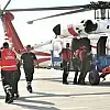 Sahile inen helikopterlerle getirilen 7 diyaliz ile bir KOAH hastası, daha sonra 112 Acil Servis ekiplerince hastaneye ulaştırıldı.