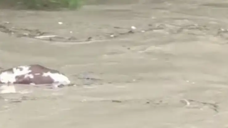 Kastamonu'nun Taşköprü ilçesinde etkili olan sağanak yağış, Gökırmak'ta su seviyesini yükseltti. Su seviyesinin yükseldiği derede sel sularına kapılan bir inek, metrelerce sürüklenerek telef oldu. Çevredeki vatandaşlar tarafından görüntülenen hayvanın sel sularında sürüklenme anları kameralara yansıdı.