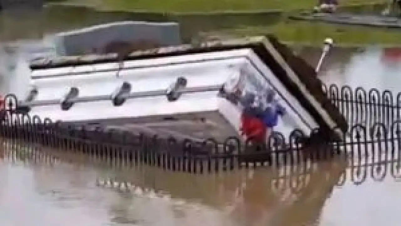 Sular tahliye edilirken, tabutlar da yeniden mezarlara indirildi.