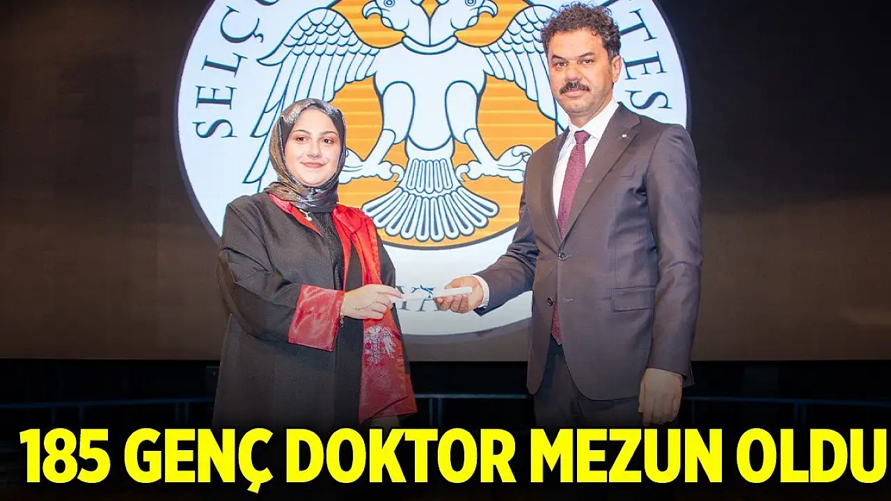 Selçuk Üniversitesi (SÜ) Tıp Fakültesinden mezun olan 185 öğrenci, düzenlenen törenle diplomalarını aldı. Genç hekimlere seslenen Rektör Prof. Dr. Hüseyin Yılmaz, 'Bilginizi vicdanla ve merhametle tamamlayın. Başarınızı tevazuuyla taşıyın' dedi.
