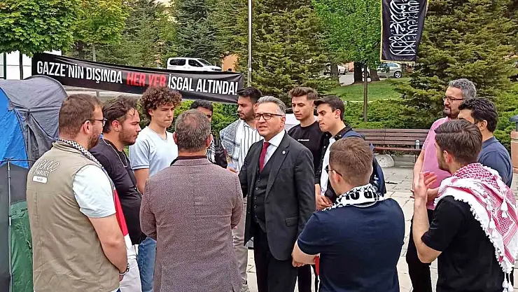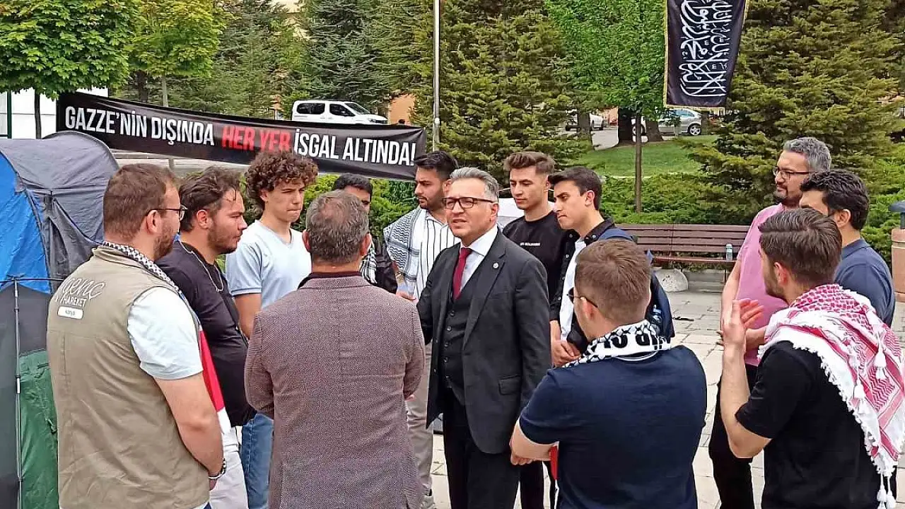 Selçuk Üniversitesi Rektörü Prof. Dr. Metin Aksoy, Gazze'de İsrail'in uyguladığı soykırıma tepki göstermek için bir araya gelen öğrencilerle buluştu.