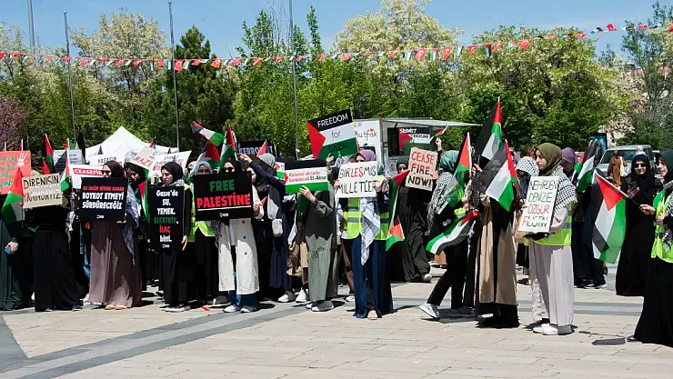 Kudüs Çalışma Grubu Koordinatörü Muhammet Kırmaz, Keykubad Köşkü önünde yaptığı açıklamada İsrail’in 7 Ekim 2023’ten bu yana 34 binden fazla Filistinliyi öldürdüğünü ve dünyanın gözü önünde soykırım suçu işlediğini ifade etti. Filistin’de yalnızca bir halkın değil, insani tüm ilke ve değerlerin ayaklar altına alındığını belirten Kırmaz, “Dünya, Gazze’de yakılan direniş meşalesinin aydınlığında ABD’de zalim yöneticilere hakkı çekinmeden haykıran binlerce vicdan sahibine şahitlik ediyor. Bizler, üniversite öğrencileri olarak Columbia Üniversitesinden başlayarak Amerika’da dalga dalga yayılan Filistin eylemlerine Konya’dan selam gönderiyoruz. Onlar yaptıkları eylemlerle işgal hükümetini rahatsız etti. Üniversitelerinin Siyonizm yanlısı tutumuna, polislerin şiddetine rağmen onurlu Filistin direnişine destek verdiler, vermeye de devam ediyorlar. Dünyanın tüm vicdanlı halklarını adalet ve iyilikte buluşmaya, zalimlerin zulmünü suratlarına haykırmaya davet ediyoruz.” diye konuştu.