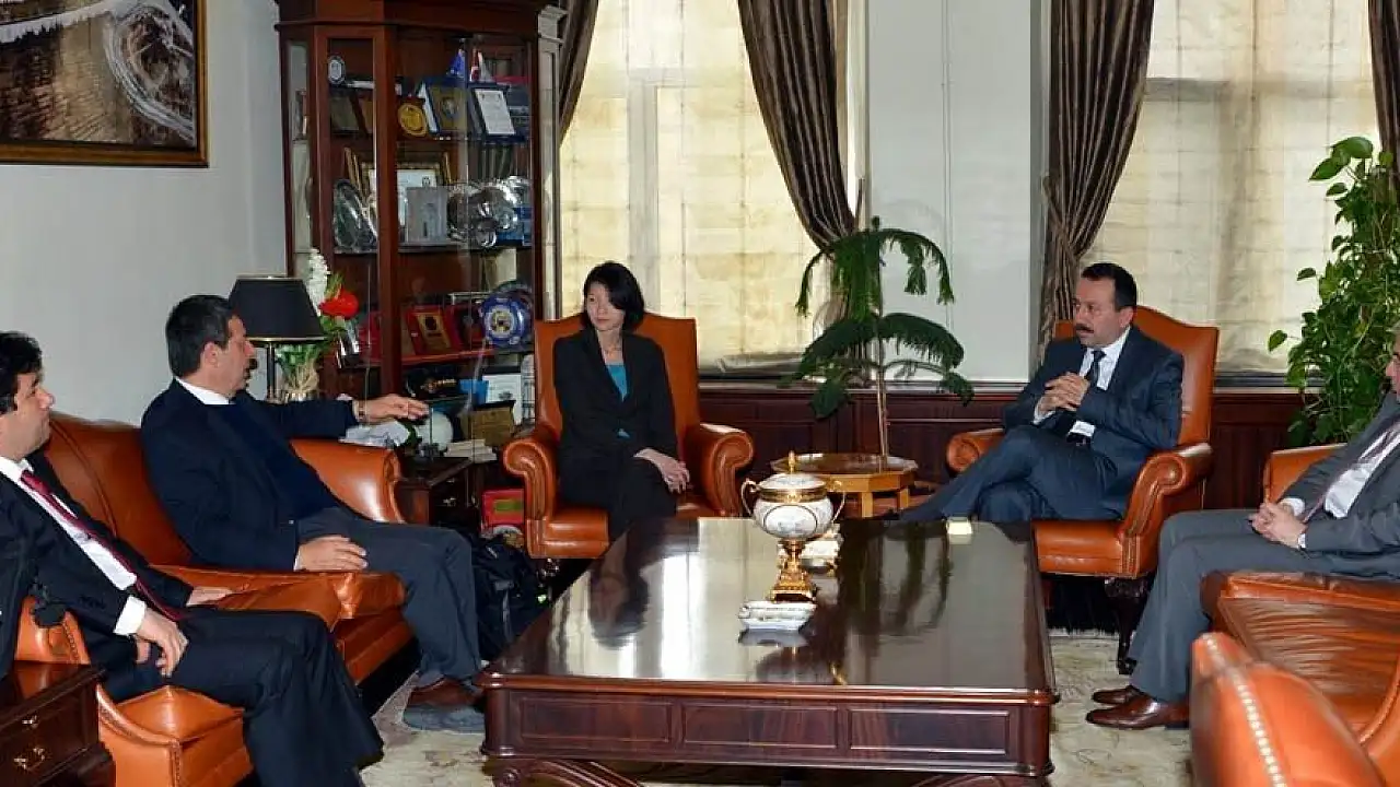 Amerika Birleşik Devletleri St. Cloud State Üniversitesi Uluslararası Programlar Sorumlusu Rektör Yardımcısı Thy Yang ve St. Cloud State Üniversitesi Türkiye Danışmanı Prof. Dr. Necati Sözüöz, Selçuk Üniversitesi Rektörü Prof. Dr. Hakkı Gökbel’i makamında ziyaret etti.