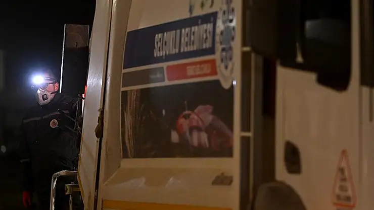 Selçuklu Belediyesi temizlik ekibi, gece gündüz cadde ve sokaklarda biriken çöpleri topluyor.