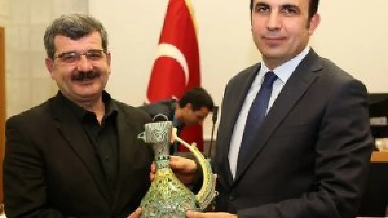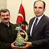 Konuşmaların ardından Belediye Başkanı Uğur İbrahim Altay, Yalınız'a plaket ve çini ibrik takdim etti.
