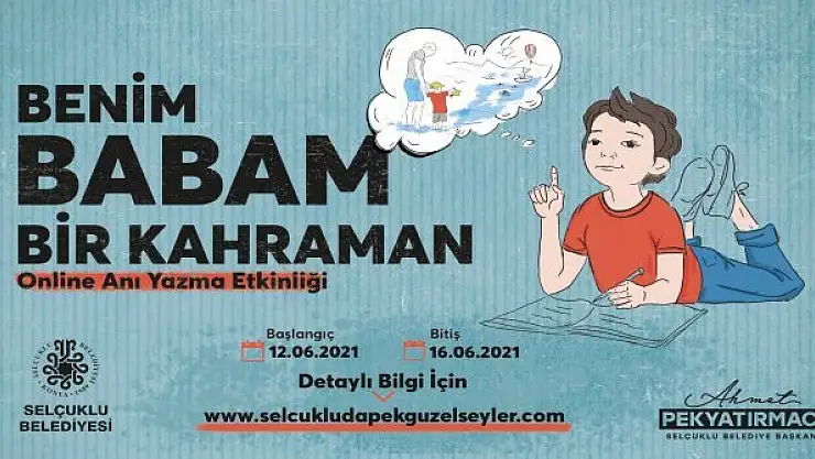 Selçuklu Belediyesi, bir ömür çocukları için türlü fedakarlığa katlanan babalar için unutulmayacak bir babalar günü etkinliği düzenliyor. Çocukların babalarıyla ilgili unutamadıkları en güzel anısını kaleme alarak katılacağı etkinlikle çocuklar ve babalar arasındaki anılar tazelenecek ve bağları daha da güçlenecek.