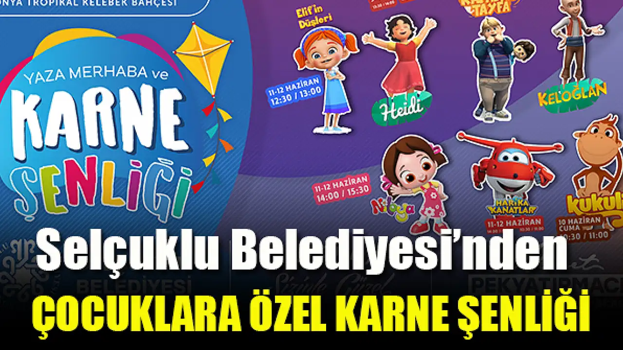 Selçuklu Belediyesi, 9-10-11-12 Haziran tarihlerinde Kelebekler Vadisi Parkı'nda 'Yaza Merhaba ve Karne Şenliği' düzenliyor. Selçuklu Belediye Başkanı Ahmet Pekyatırmacı, tüm çocuklar ve ailelerini karne şenliğine davet etti.