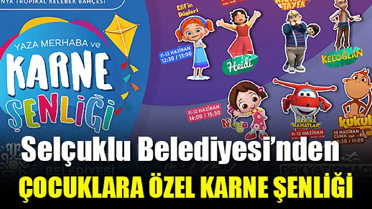 Selçuklu Belediyesi, eğitim öğretim yılının sona ermesi ile birlikte yorucu bir dönemi geride bırakan çocuklar için yaza merhaba karne şenliği düzenliyor. Kelebekler Vadisi Parkı’nda 9-10-11-12 Haziran tarihlerinde gerçekleştirilecek şenlik ile çocuklar eğitim yılının tüm yorgunluğunu gönüllerince eğlenerek atacaklar.